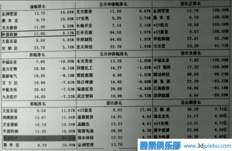 價(jià)當(dāng)天放量上穿多條均線,且當(dāng)天K線姿態(tài)并不算高,如選股技巧解析利用漲幅排行尋找強(qiáng)勢股果該股屬于強(qiáng)勢明顯的個(gè)股同時(shí)又滿足這個(gè)條件,那短線股價(jià)就一定具有進(jìn)一步的上漲空間,當(dāng)天股價(jià)沒有漲停的話可在當(dāng)天收盤前快速跟進(jìn),短線收益較為明確。如圖1所示是2011年9月6日收盤時(shí)的深市綜合排名情況,圖中漲幅排名欄顯示的六只個(gè)股經(jīng)過分別查看K線圖后發(fā)現(xiàn)中原特鋼(002423) 當(dāng)天的K線放量上穿了多條均線(如圖所示),強(qiáng)勢特征-覽無余, 后期進(jìn)一一步 上漲非常有望,操作上可在當(dāng)天尾盤伺機(jī)跟進(jìn)。