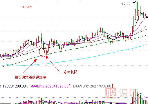 2.奪命長陽K線除了必須具備足夠的陽線實(shí)體之外,還必須有足夠的量能力度。